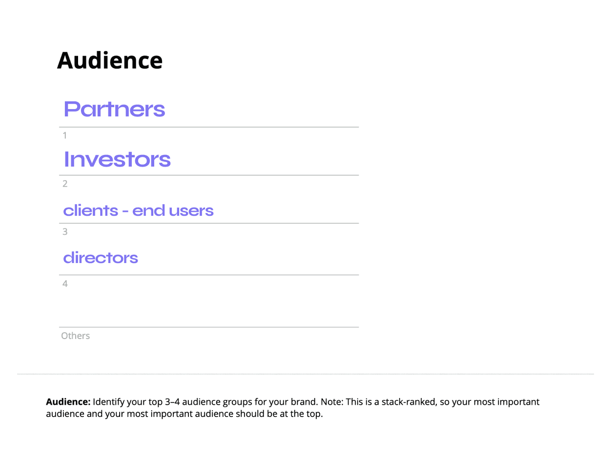 After sufficient knowledge working, moving toward actionable goals is done by synthesising them into directives. Informed by pain points, H.M.W's and previous conversations, these directives are unique to the team, period & company and are uniquely designed to play two key roles;